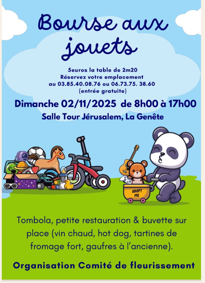 - 02 Novembre : Bourse aux jouets du Comité de Fleurissement à la Tour Jérusalem