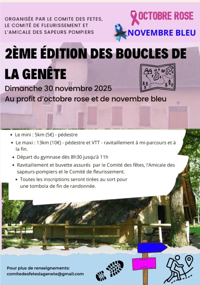 - 30 Novembre : Boucles de la Genête organisé par Comité des Fêtes, le Comité de Fleurissement et l’amicale des Pompiers