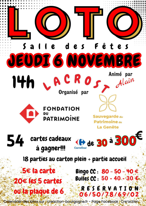 Loto au profit de « la Sauvegarde du Patrimoine de La Genête » par Mairie La Genete | Mai 6, 2025 | actualités | 0 commentaires Lire l’article : Loto le 06 novembre Poster le commentaire Annuler la réponseVous devez vous connecter pour publier un commentaire.